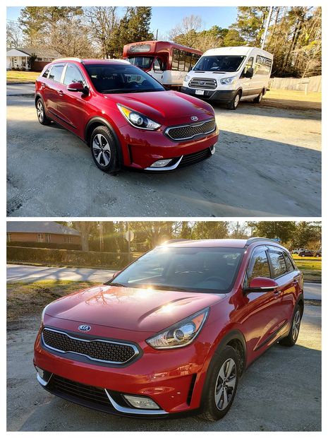 Our two Kia Niros seat up to three each, with space for baggage in the hatch. The back seats offer lots of legroom and comfort.